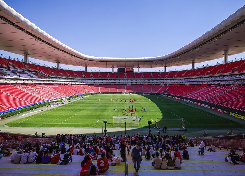 Guadalajara acogerá cuatro partidos durante la Copa del Mundo 2026, incluyendo el segundo encuentro de la selección mexicana en la fase de grupos. Todos sucederán en el Estadio Akron, con capacidad para 48,000 aficionados y ubicado en los límites de la ciudad, en Zapopan. Para llegar hasta allá, lo mejor sería hacerlo en auto o taxi, aunque también es posible hacerlo en transporte público, con varias líneas de autobús que pasan por los alrededores del estadio, o con el servicio Mi Macro Periférico, que conecta directamente con la estación Estadio Chivas.