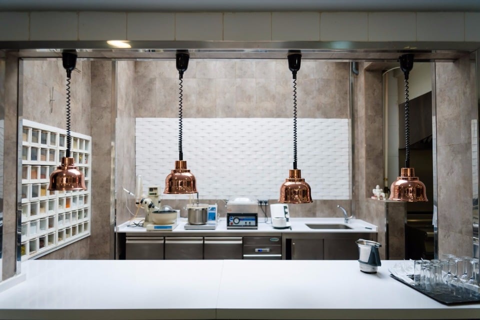 Por un pequeño elevador subimos después hasta la cocina, donde Mario nos esperaba con tres aperitivos basados en el olivo: bizcocho de aceite, aceituna con pistache y pan al vapor con aceite arbequina, que disfrutamos conversando con él mientras mirábamos a los cocineros preparando las delicias que pronto comeríamos. A continuación, pasamos a la zona central de la cocina donde está el horno de leña en el que se asa el famoso cochinillo, que es algo muy especial, no sólo por la forma de cocinarlo, sino también debido a la raza exclusiva que resultó de un cruce que hizo la familia Sandoval hace muchos años. De hecho, todos los cochinillos que se sirven en el restaurante se crían y alimentan en la granja familiar y cuentan además con huerta propia a pocos kilómetros de distancia, donde cultivan muchos de los productos que se sirven en el restaurante, para poder garantizar el origen de cada producto y la autenticidad en cada plato. Frente al horno tomamos el último aperitivo, una tortilla de leche de oveja ahumada con nueces.